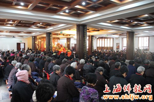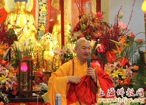 2014年3月26日上午8时30分,上海龙华古寺首座监院中观法师,如期为居士林400多信众开示。