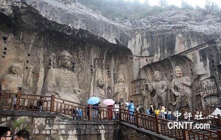 两岸记者参访龙门石窟卢舍那大像龛(图:孙仪威 中评社)