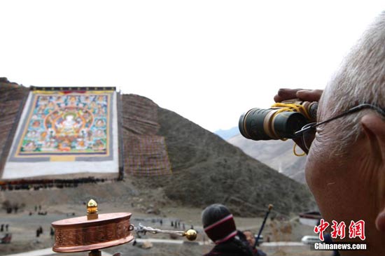 玉树地震四周年 当卡寺晒佛大会缅怀逝者祈福生者