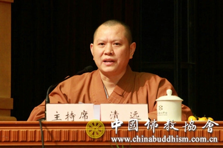 中国佛教协会寺庙工作办公室主任清远法师主持上午的讲经法会