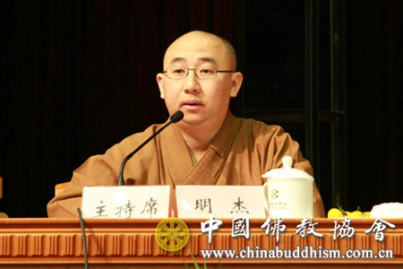 中国佛教协会综合研究室主任明杰法师主持下午的讲经法会