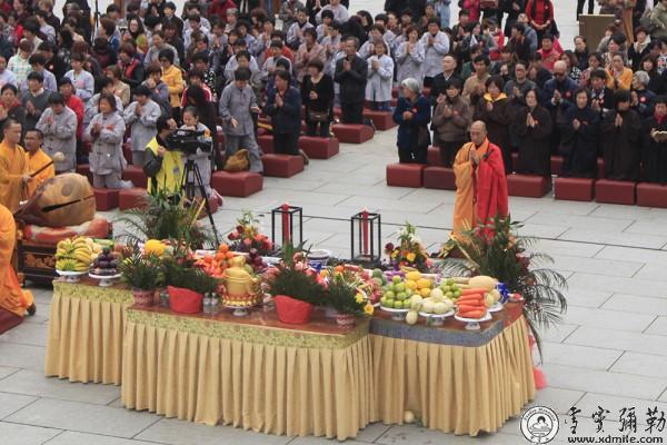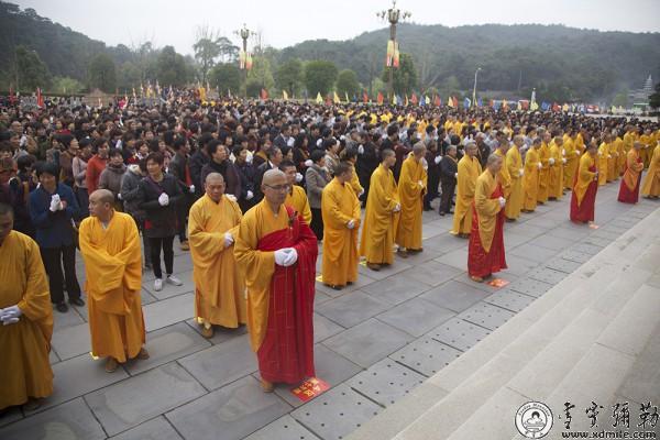 2014年4月1日,农历三月初三,“三月三·龙华会”在浙江奉化雪窦山资圣禅寺隆重举行,来自省内外近三千余人参与了本次三步一拜弥勒大佛盛大法会。此刻,共同见证了广大善信居士对弥勒菩萨的尊崇信仰。