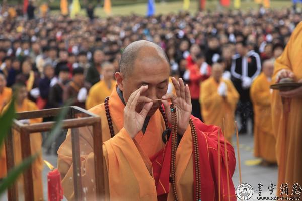 上午8点30分,本山方丈怡藏大和尚在大慈佛国牌楼处诵唱祈愿文疏,祈愿本次法会圆满成功,祈愿全体善信居士身体健康、阖家幸福。