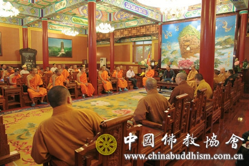 2014年4月22日上午,以云南省委统战部杨光海副部长为团长的南传佛教代表考察团一行30余人到北京广济寺拜访中国佛教协会,受到中国佛教协会副会长学诚法师的热情接待。