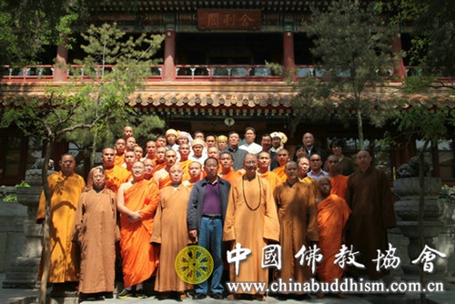 中佛协副会长学诚法师与考察团一行在广济寺舍利阁前合影留念