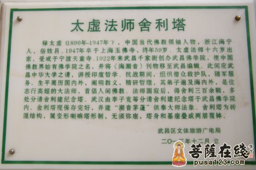 太虚大师为武昌佛学院创办人,先后在武昌佛学院宣讲《瑜伽师地论菩萨地真实义品亲闻记》(1922)、《大乘五蕴论》(1924)、《佛教心理学之研究》(1925)、《学佛者应知行之要事》(1926)等,并于此编著《佛教各宗派源流》(1922)等教材。