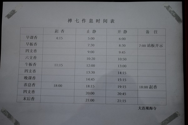 为发扬禅宗传统家风,2014年4月28日,大连观海寺禅七法会起七。