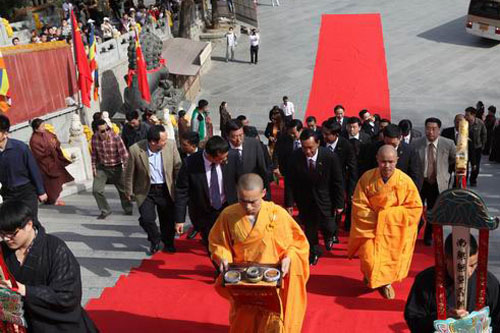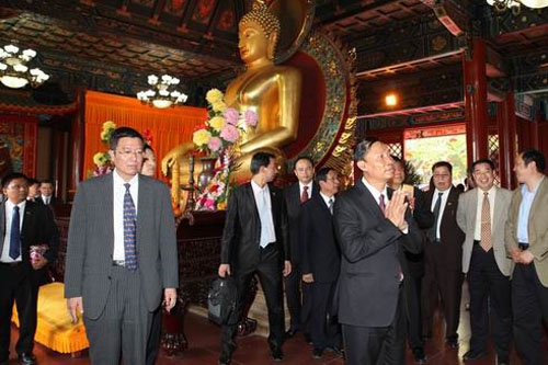 中佛协张琳副秘书长等领导陪同议长先生一行参访灵光寺