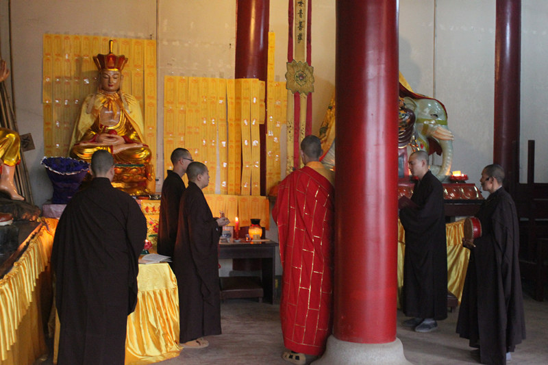 今天上午8时,目莲寺常住在大雄宝殿虔诚启建三时系念道场,以此法会功德回向中华民族历代忠烈,朝鲜战争为国牺牲英烈,早日安息,魂归故里,与会斋主善信历代宗祖、六亲眷属、冤亲债主等众蒙佛接引,永离业海,直证不退,圆满无上菩提!