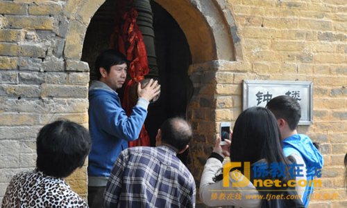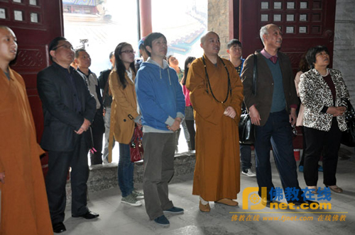 沈祖荣会长与董群教授主要对徐州佛教源远流长的历史进行了实地考察。在参观兴化禅寺的过程中,沈会长与董教授一行就徐州佛教研究的历史与现状以及徐州佛教的历史沿革、云龙山摩崖石刻造像的艺术价值等问题同果光大和尚进行了深入的交流和探讨。沈会长、董教授一行还参观了由季羡林先生亲笔为果光大和尚题写的“禅月无声”碑刻,以及唐宋摩崖石刻造像和北魏大石佛等寺内景点。在明代建筑的钟楼里,董教授饶有兴致地撞了四下钟,他说这是要表达“佛教四谛”(苦谛、集谛、灭谛、道谛)之意。