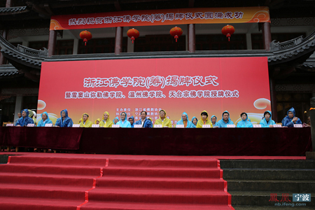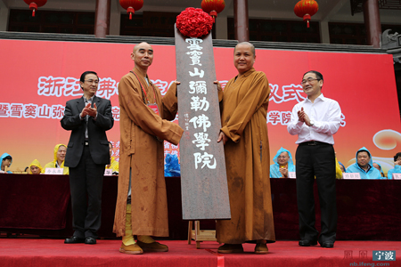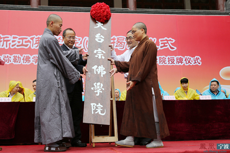 浙江佛学院(筹)揭牌暨雪窦山弥勒佛学院、温州佛学院、天台宗佛学院授牌仪式圆满(图:陈春 凤凰宁波)