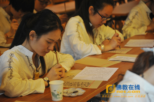 禅修后,同学们还在如光法师地指导下抄写《心经》,观看佛教电影《小活佛》,瞻仰玄奘法师舍利。庆妙法师在下午闭营式上祝福每位同学开心,吉祥,多做自利利他的事,把佛法的善精神带入生活。