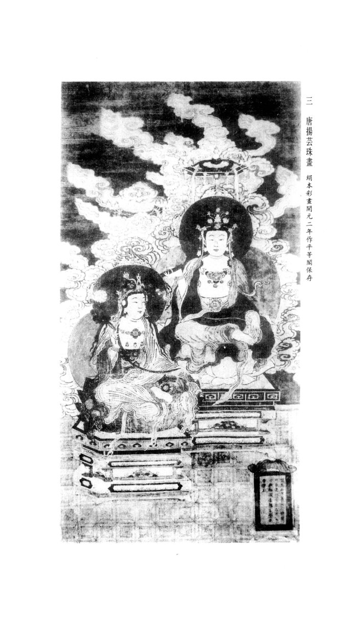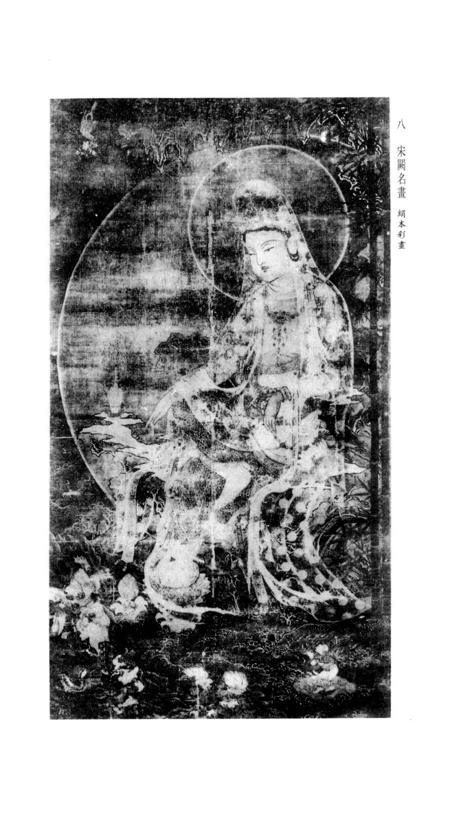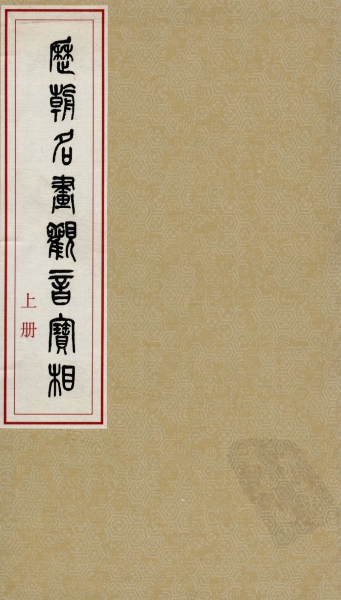近代实业家张謇因四十多岁尚无子嗣,张母每岁于狼山观音岩求子,后来果然如愿。为报观音送子之恩,张謇着经造像,改建观音禅院,并将台州人张摩诃寄藏的一百多轴观音画像“易故殿宇,建阁三层”,张謇去世十多年后,面临日寇侵华的劫难。为了使这批佛门至宝免遭涂炭,佛学家费范九将画轴密运上海。用上等宣纸、珂罗版精印了这批名画壹仟部,起名曰《历朝名画观音宝相》。画集分上下两册。