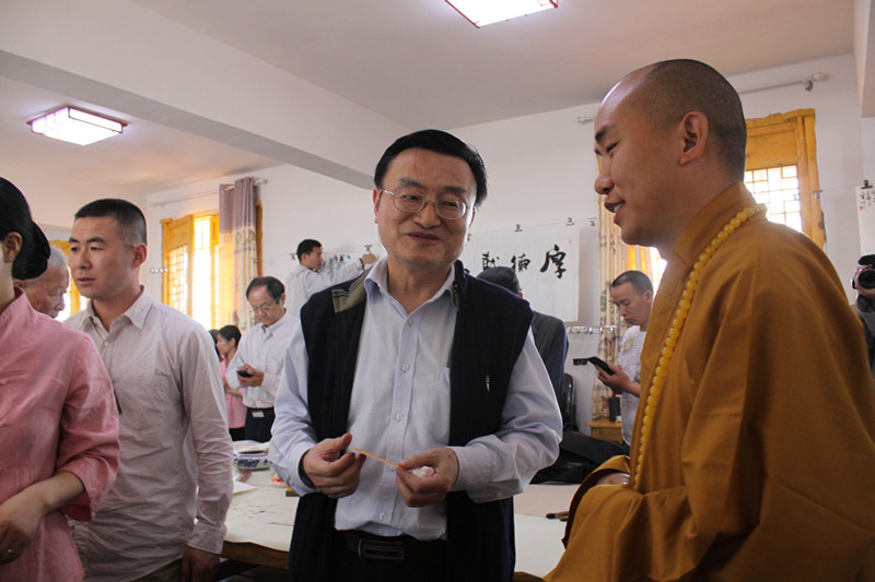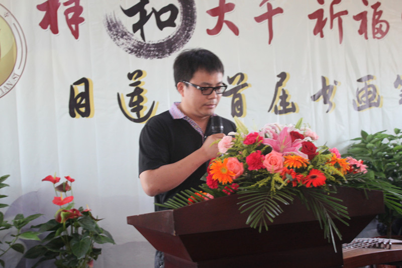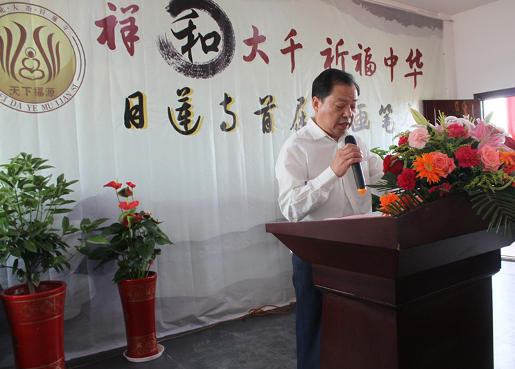 活动于上午10点多在大众的期待中正式开始,大冶书协主席刘金明老师主持活动并做了热情洋溢的欢迎辞,欢迎诸山长老、书画老师们不辞辛苦于百忙之中抽出时间来到目莲寺参加书画笔会。