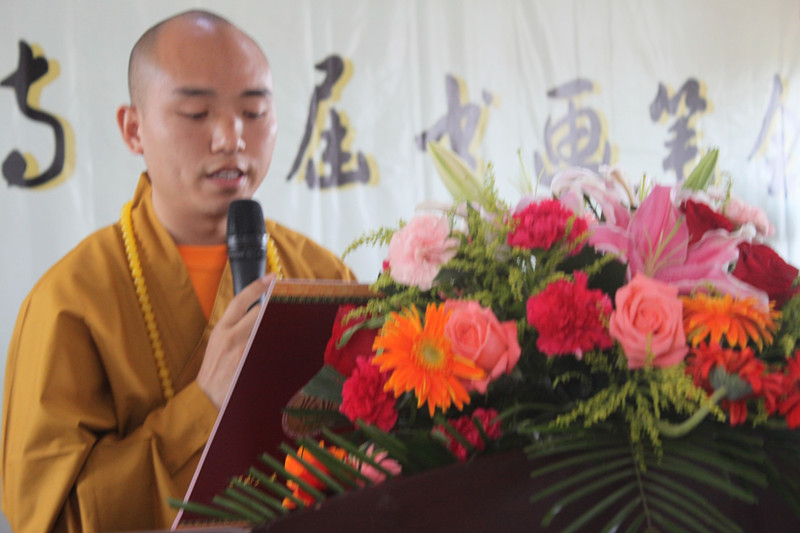 最后,我寺住持文慧法师代表四众弟子,向光临书画笔会的各级领导、诸山长老、书画老师和各位大德,表示诚挚的欢迎,常住将秉承“将此身心奉尘刹,是则名为报佛恩”的信念,继续在各级部门的指导下,与四众弟子共同努力,把目莲寺管理好、建设好,让它成为大冶繁华闹市中的一方净土,十方信众的心灵家园,并祝愿莅临今天活动的各级领导、诸山长老、书画老师、大德,身心自在,六时吉祥!