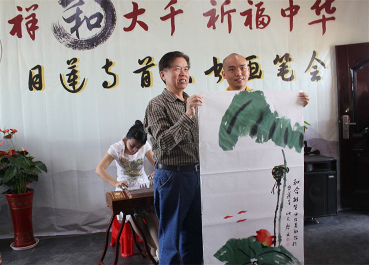 为响应习总书记重要讲话精神,大冶目莲寺昨日圆满举行“祥和大千 祈福中华”首届书画笔会,著名书法家、国学大师孙方老师,黄石书协顾问、原黄石市书协首任主席樊稼生老师,中国书法家协会会员、湖北省书法家协会副主席张明明老师,大冶市委党校副校长冯松林老师等湖北省武汉、黄石、咸宁、大冶、阳新及江西、广东等地僧俗两序共60余位书画名家和有关领导,莅临目莲寺挥毫泼墨,用手中的画笔为中华祈福,表达对祖国母亲的热爱,对和谐社会的向往与追求,对美好中国梦的憧憬。