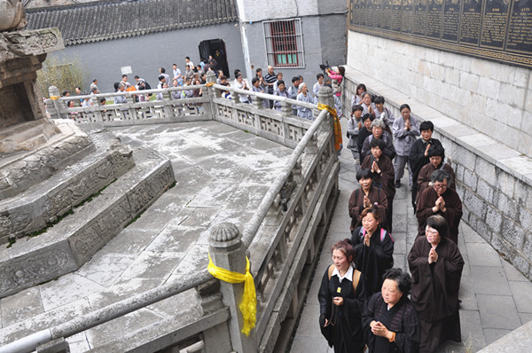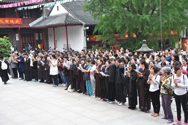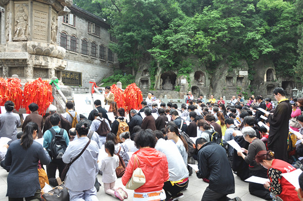 来自杭州、苏州、无锡、合肥、深圳、辽宁、上海等地的上千人到南京栖霞寺集体瞻礼佛顶骨舍利,其中苏州长寿庵法师就带领杭州、苏州、张家港、常州等地近两百多人前来瞻礼,场面让很多前来瞻礼佛顶骨舍利的人感动不已。