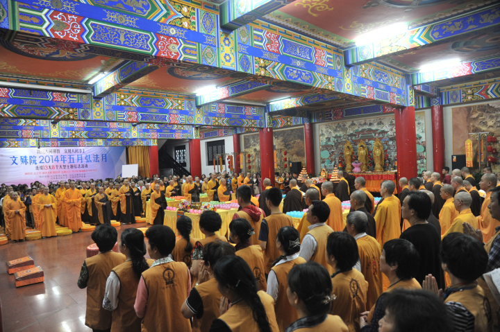 5月13日,在国际卫塞节之日,成都文殊院“五月弘法月”最后一项大型活动——“国际卫塞节传灯回向大法会”在寺内文殊阁隆重举行。近800名在弘法月中参与护法的志工、志工节及佛诞晚会演职人员、青年佛学会学员及志工家属等,带着对这13天来的感动与收获,将功德回向给法界众生,祈愿世界和平,佛法昌隆。