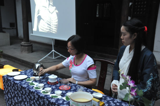 文殊院禅茶社学员为同学展示禅茶茶艺