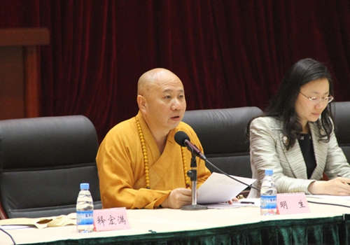广东省佛协会长明生法师宣读《广东省佛教协会第八次代表会议筹备工作方案》(讨论稿)