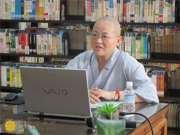“上本下焕恩师上人离开我们两年了,我一直觉得恩师上人他就在我的身边。十二年的师徒情,十二年的亲言传,十二年的亲身教,我耳濡目染地受到诸多薰习,没齿难忘。”26日下午两点半,读书会开始,印盛法师才情四溢,她从自己的经历开始谈起,引领现场人士走进此次读书会的主题。“恩师上人是大智慧者,他对我的影响是全面的:因一个梦,梦到恩师上人并在深圳弘法寺找到皈依,从此由一个完成了西方教育并受基督教影响的我走进了佛门;因一句话,恩师上人对我说佛教需要你这样的人才,便放弃高薪高职在上本下焕恩师上人座下剃度,从此由一个担任国际公司高管的我斩断青丝离尘缘步入空门。今年清明,在恩师圆寂两周年之际,他对我的三个嘱咐越发强烈地在我的脑海里回荡,这三个嘱咐是2012年恩师上人在生前最后一次离开方丈室的头天对我嘱咐的……”