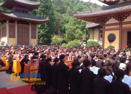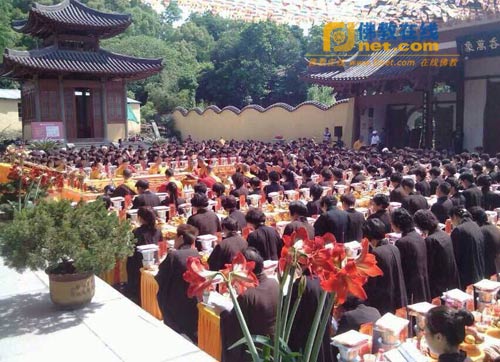 2014年5月1日,浙江温州护国寺举办《五百罗汉斋》法会,来自各地居士信众欢喜参加法会。