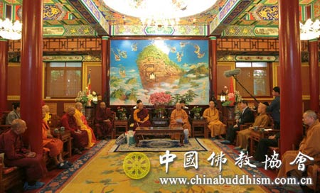 2014年5月4日上午,全印度比丘僧伽会会长达玛维利长老一行拜访中国佛教协会,受到中国佛教协会会长传印长老、副会长学诚法师和秘书长王健先生的热情接待。