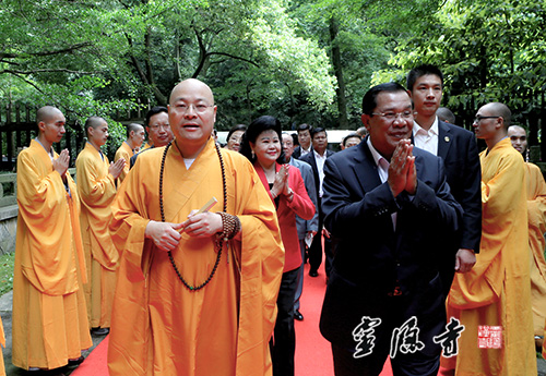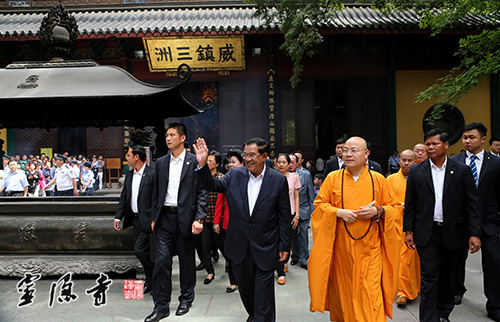 2014年5月22日下午,柬埔寨首相洪森参访灵隐寺,受到灵隐寺方丈光泉法师及两序大众的热情接待。