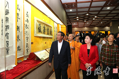 洪森首相参观灵隐寺文物展厅
