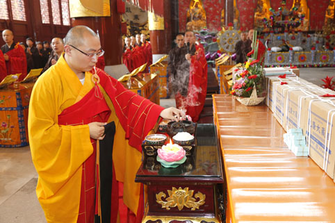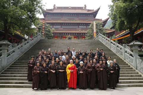 2014年5月26日上午,宁波居士组团一行51人专程驱车来到绍兴炉峰禅寺,向即将落成的文昌书苑(佛学图书馆)赠送一部《乾隆大藏经》,以表虔诚供养之心。受方丈净芳大和尚委托,监院了德法师、知客果心法师盛情接待宁波居士团一行,并在大雄宝殿隆重举行了《乾隆大藏经》供奉法会。