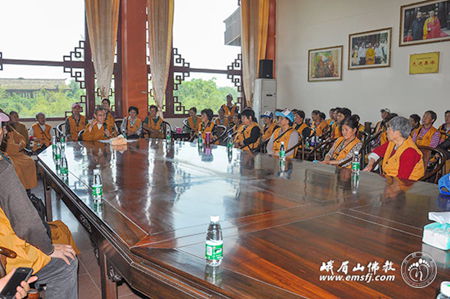 祖定法师一行与峨眉山佛学院副院长法源法师在大佛禅院如意轩座谈交流