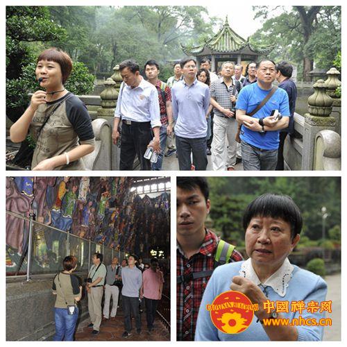 讲解员在认真的为还海内外作家们讲解南华寺的历史文化