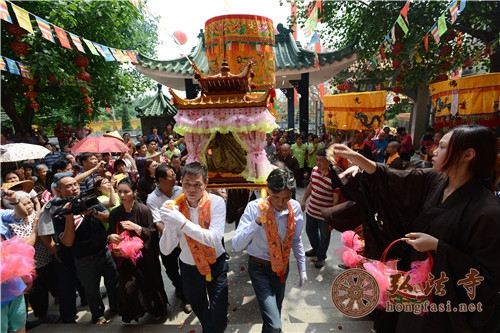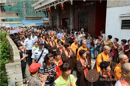 弘法网讯:2014年5月18日,广东顺德觉妙净院隆重举行了恭迎本焕长老舍利暨永久供奉法会,并祈愿风调雨顺,国泰民安,世界和平。广大信众共同参与和见证了这一场佛教盛典。