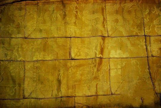 湖南省新宁县文物局见到了传说中的清中期皇家文物珍品“五爪金龙云锦袈裟”。湖南省文物鉴定中心杂项专家金波认为这件袈裟是采用皇宫御用织造局织造的云锦,质地坚实,着色亮丽,柠檬黄属于皇家专用色,虽历经二百多年,依然保存的相当完好,不愧是清中期皇家文物珍品,在湖南乃至全国都非常难得。