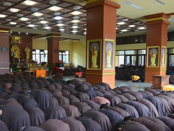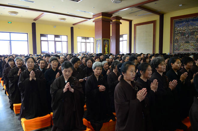 下午3时起,悦众师鸣磬击法鼓,四众弟子齐唱《赞佛偈》 ,昼夜经行念佛法会正式开始。