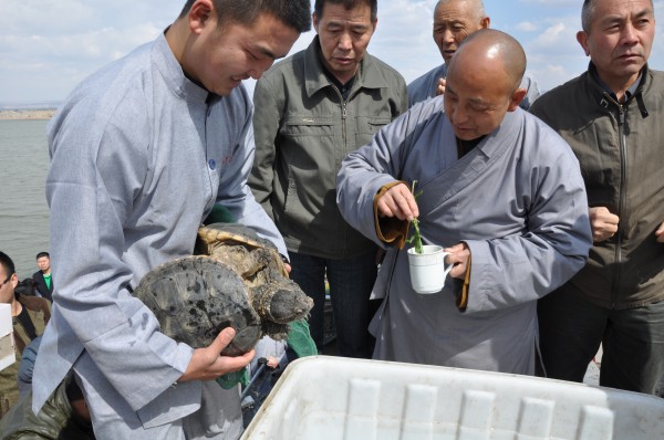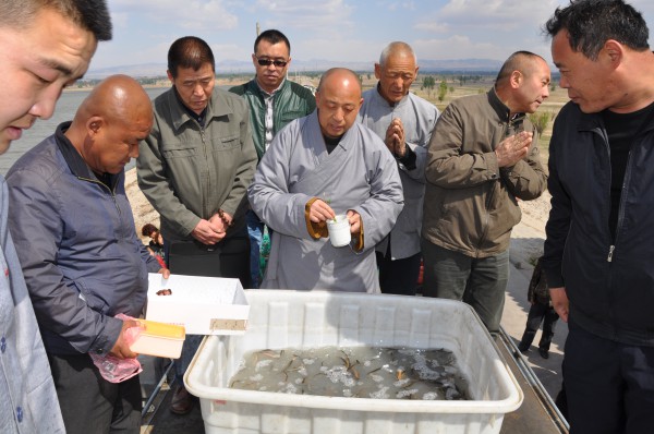 2014年5月4日山西广灵极乐寺放生活动在蔚县水库举行