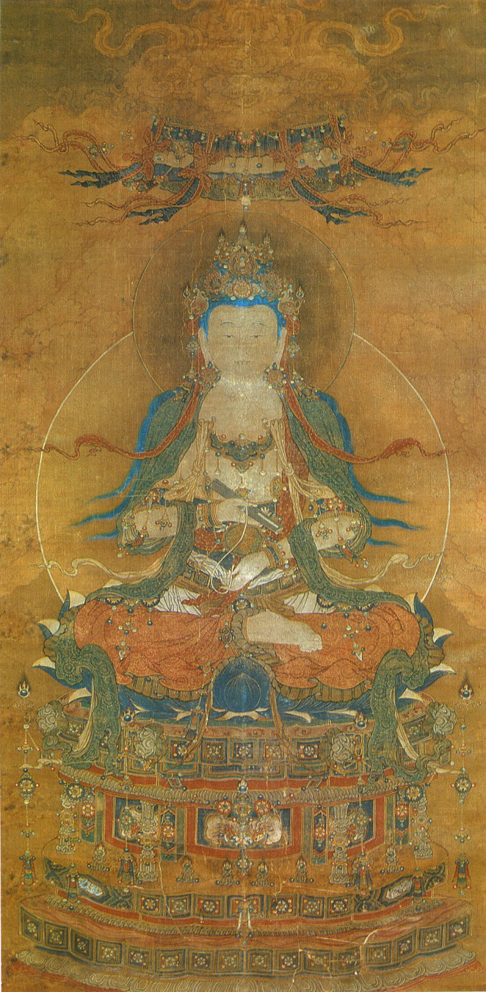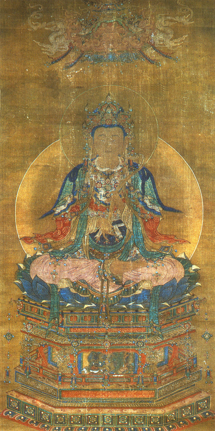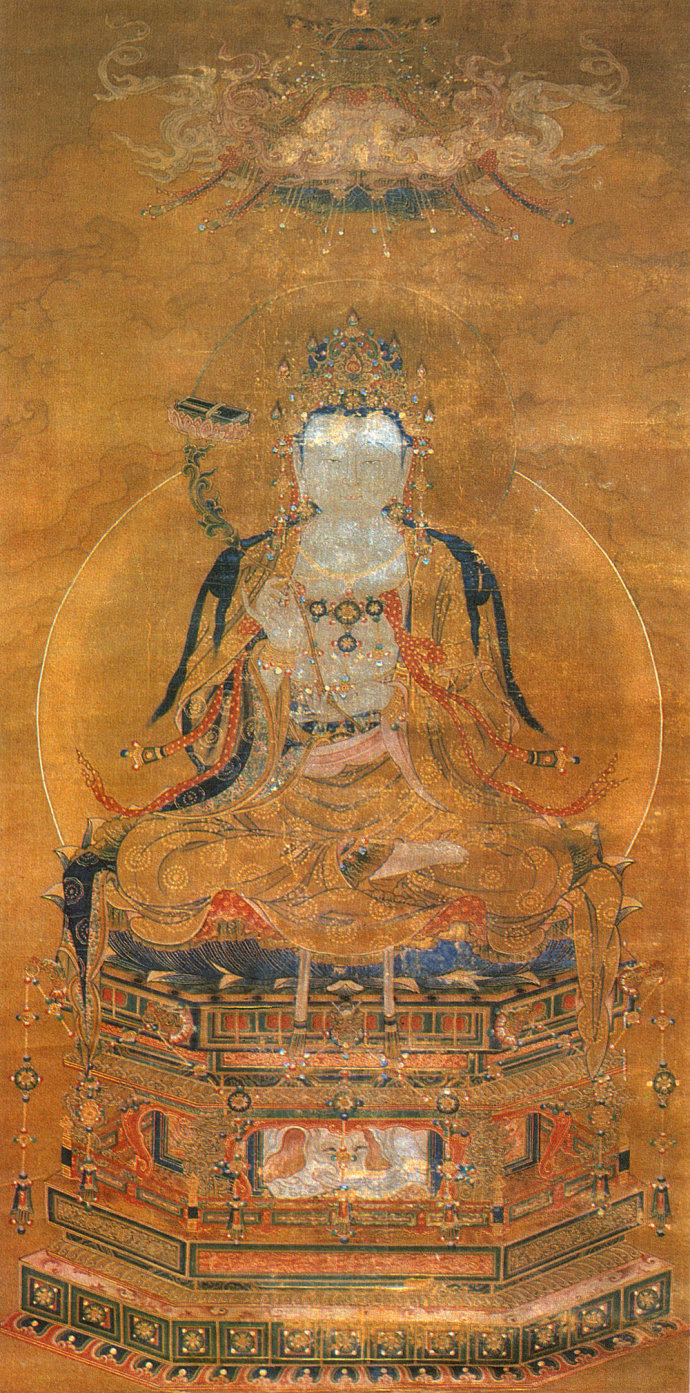 全称文殊师利菩萨,中国佛教四大菩萨之首,为释迦牟尼佛为的胁侍之一,是智慧的化身。在《华严经》中,表理之普贤与表智之文殊同为毗卢遮那佛之胁侍,三者合称“华严三圣”。文殊菩萨说法道场在山西五台山。