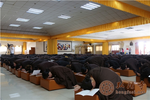 2014年5月31日,弘法寺第二十一期八关斋戒如期举行。共有近四百位名戒子参加了本次殊胜八关斋戒,过一天一夜的出家人清净生活。这次八关斋戒参与人数又创了历史新高。
