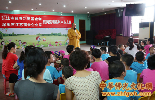 2014年6月10日,弘法寺慈善功德基金会在各级领导的关怀下前往深圳市儿童福利中心,延续往年的传统,为孩子们送去慰问及祝福。中国佛教协会副会长、海南省佛教协会会长、深圳弘法寺方丈印顺大和尚与孩子们亲切交谈并送上了贴心礼物。
