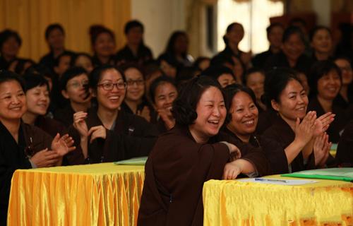 下午,在经过闻所成慧测验、佛法开示、法师教嘱后,戒子们欢喜出堂。