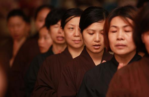 2014年5月30日晚至6月1日下午,弘法寺第二十一期八关斋戒圆满举行,四百位戒子们欢喜出堂。通过一日一夜出家人生活体验,全程止语、过午不食,课程包括受戒、拜山、早课、禅修、法谈等培植出世之因,远离喧嚣红尘、感受佛法清凉。