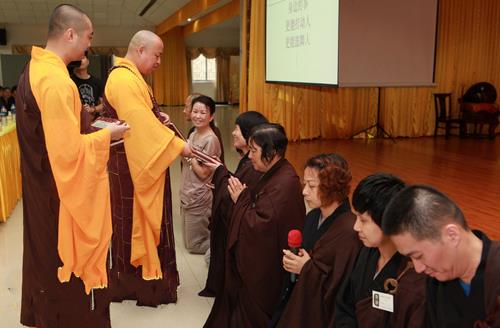 “我们知道时时刻刻要来请教我们的长辈和老师,请教我们身边的善知识,来指出我们的不足,来解决我们生活中的各种困惑。我们要善于学习我们所应该学习的一切的经典的内容,一切应该掌握的各种技能,去随顺身边的因缘,而不被他所转。要把我们过去所有的成就,回向给社会,回向给众生。”八关斋戒教授师叶老师在出堂时给戒子们说到。大家受益匪浅。第二十一期八关斋戒圆满