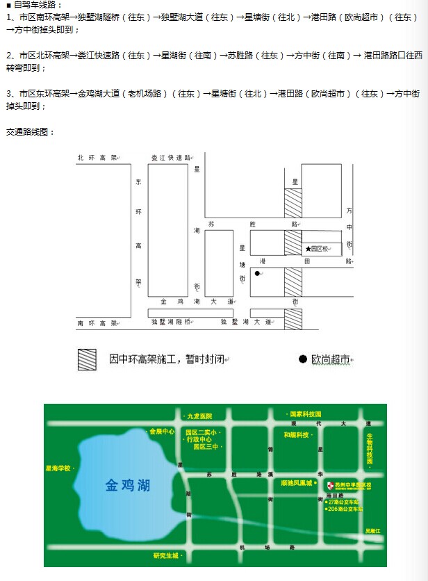 外地学员可以通过百度地图了解到达苏州后前往苏州中学园区校的乘车路线。