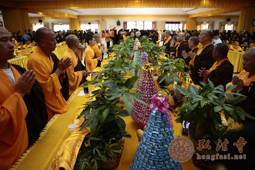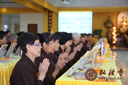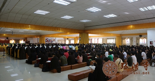 2014年6月18日,延续历年传统,弘法寺华严法会于弘法寺经堂隆重举行。来自天南海北的近千余信众专赴弘法寺,讽诵华严,同沐法雨,共享法喜。