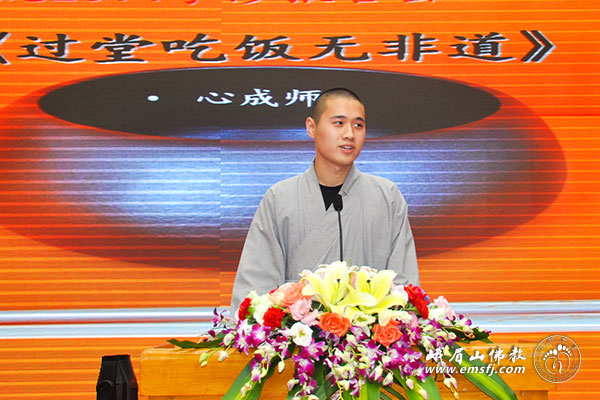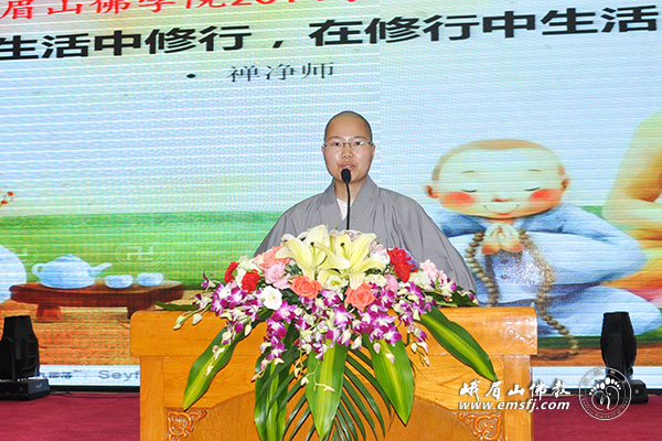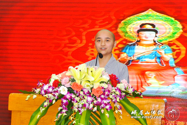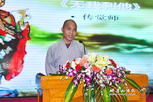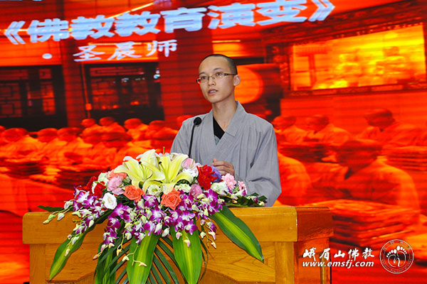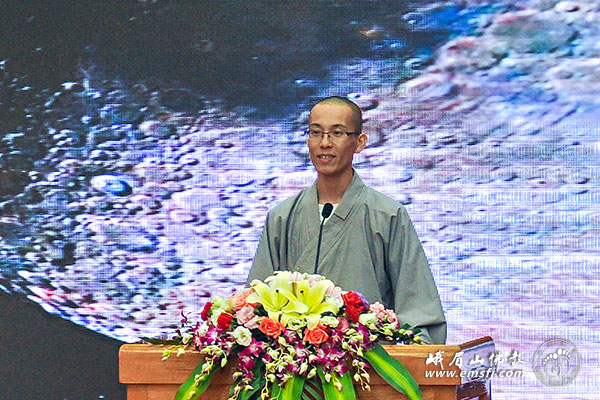 报告会开始,法源法师首先发表讲话。他说,举办此次报告会的目的在于锻炼学僧们的表达能力,发扬“不忍圣教衰,不忍众生苦”的担当精神,为将来弘法利生作准备。
