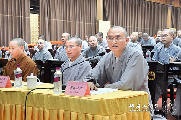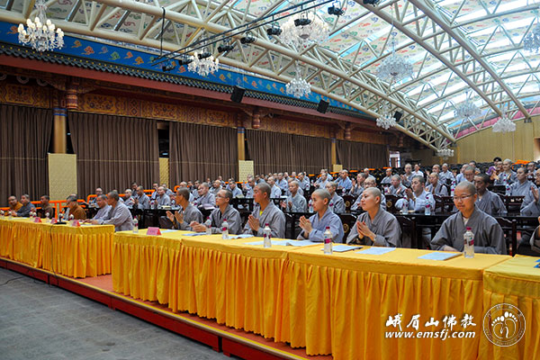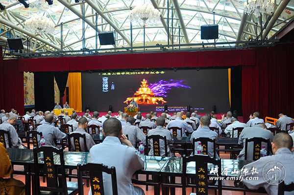 6月16日上午,峨眉山佛学院在大佛禅院峨眉讲堂举办了2014年学修报告会。参加此次报告会的有:佛学院副院长满霖法师、法源法师、隆藏法师,教务长永照法师,副教务长演妙法师及全院师生。报告会由佛学院训导部组织,心成法师和智慧法师两名学僧主持。