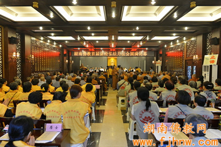 2014年6月10日下午,由湖南省佛教协会主办,长沙麓山寺承办的湖南佛教首届讲经弘法月闭幕式在麓山寺讲经堂隆重举行。