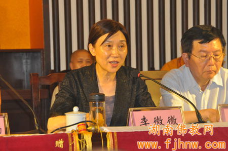 李微微部长在讲话中,对湖南省佛教协会举办此次讲经活动给予充分肯定和称赞,希望每年都能举办这么有意义的活动。举办佛教讲经交流会,是加强佛教自身建设、培养锻炼人才的重要举措,对引领和推动全省各地汉传佛教界讲经弘法活动不断深入,在佛教界中形成学经讲经、阐扬正信的良好风气,加强佛教界自身建设发挥了积极作用。希望通过讲经交流厚植根基,对佛教教理教义做出富有时代精神的诠释,不断挖掘佛教和谐思想,倡导佛教和谐理念,树立佛教界良好形象;要通过讲经弘法,不断向社会释放和传递清净和谐的正能量,引导信众爱国、正信和服务社会。希望佛教界大力弘扬利乐人群、服务社会的优良传统,积极服务改革发展,努力促进社会和谐,为书写中国梦的湖南篇章贡献智慧和力量。