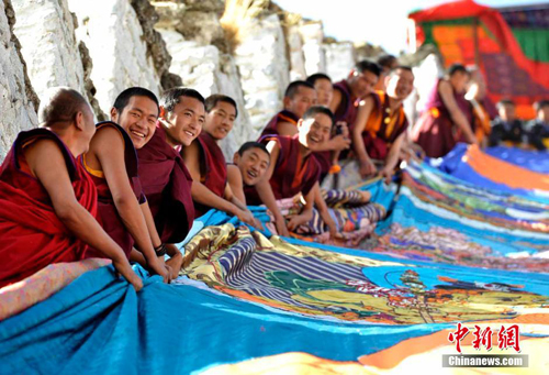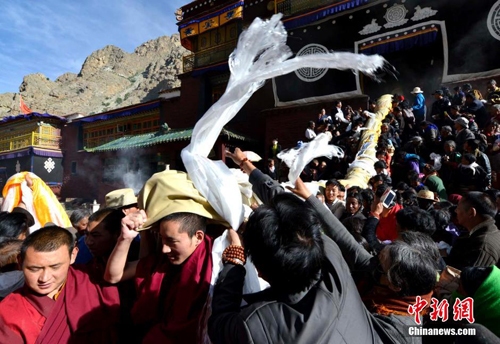藏传佛教噶玛噶举派祖寺楚布寺举行展佛仪式