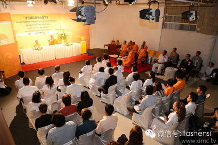 当天的新闻发布会在法身寺基金会传媒部举行,曼谷高僧协会委员代表—帕拉彭迷提长老,国家佛教委员会副委员长—先巴社先生,世界佛教青年协会主席—彭钗颇先生,kintim公司总裁—苏威先生以及著名演员和歌手等参加发布会。